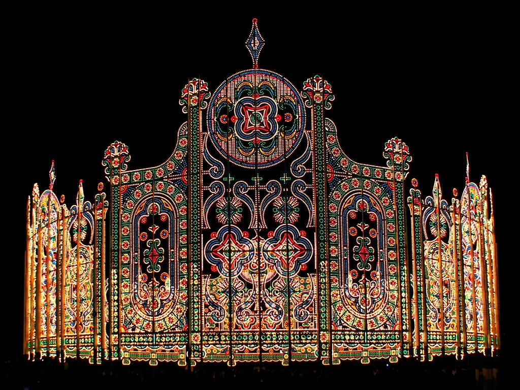 你可能听说过“沙雕”,就是用沙子垒出多种造型,有人物、有建筑。那么光雕又是什么呢?意大利光雕是一种大型的户外艺术景观。以文艺复兴成熟时期的巴洛克艺术为根基,融合欧洲传统建筑的美学元素,运用绘画、雕刻等手法构成欧洲建筑的轮廓,然后在构成建筑金属架上运用光和电,在夜晚组合成华美壮观的建筑景观。